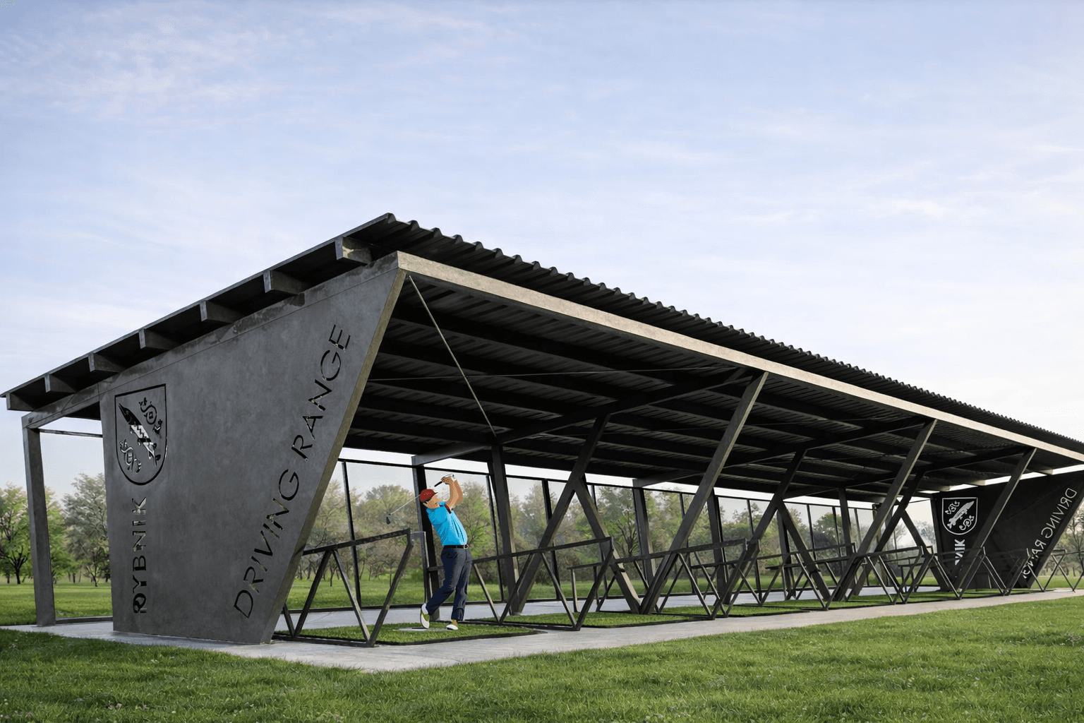 Teren pola golfowego uzupełniają strefy chipping green oraz putting green, oraz 8 stanowiskowa strzelnica golfowa (driving-range), o długości 200m i szerokości ok. 55 m (pomiędzy piłkochwytami), z systemem nawodnienia. Obsługę szkółki oraz pola golfowego pełni zaprojektowany w technologii modułowej budynek klubowy, z zapleczem sanitarnym, pomieszczeniem obsługi, zapleczem magazynowym oraz salą dla symulatora golfowego. Dla tego etapu opracowaliśmy projekt budowlany oraz szczegółowy projekt wykonawczy, wraz z kosztorysami.